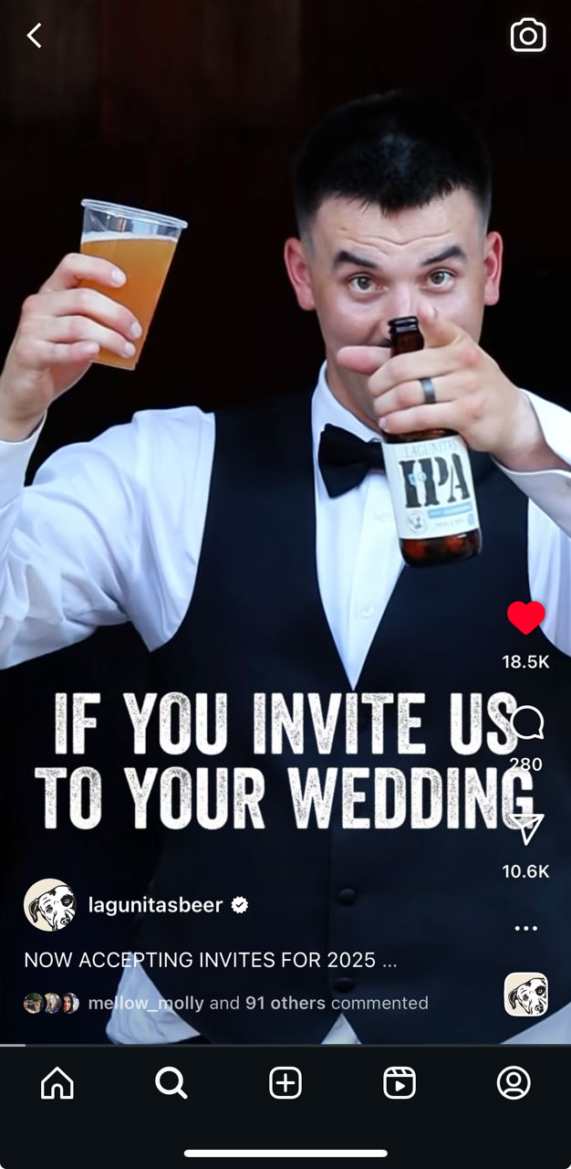 Please review Lagunitas “weddingcrashers” campaign and rate it using the Heineken Creative Ladder. Your (anonymous) vote will be referenced in the Creative Council session. You can return to your vote or change anytime using your login details.